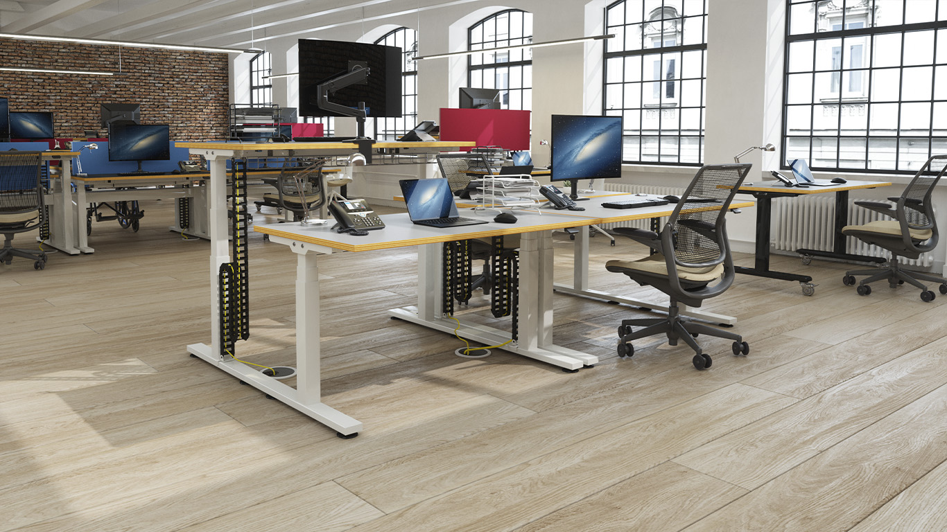First launched in 2014, SOS was introduced to the market in response to the growing need to encourage movement and promote greater health in the workplace. It was aptly named too – as SOS stands for ‘sit or stand’. Three years later we launched SL – a lighter version of SOS that still offered Staverton’s trademark durability and the innovative and detailed approach to cable management we’re so well known for. Now in 2022, both SOS and SL have been improved further to offer even greater flexibility and longevity.