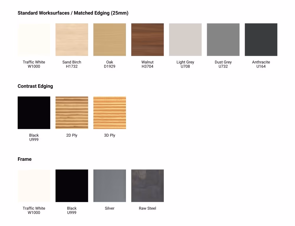 A complete range of desks, benches, and tables with a distinctive floating top design for a clean, modern look. Built to last with a lifetime framework guarantee and FIRA Gold certification, ZD+ offers block-adjustable heights, retrofittable sit-stand conversion kits, and a wide choice of finishes and fabrics for personalisation. Telescopic, cable-managed beams allow easy resizing and discreet horizontal and vertical cable management to keep workspaces tidy. Available in multiple frame sizes and configurations to suit any office layout.